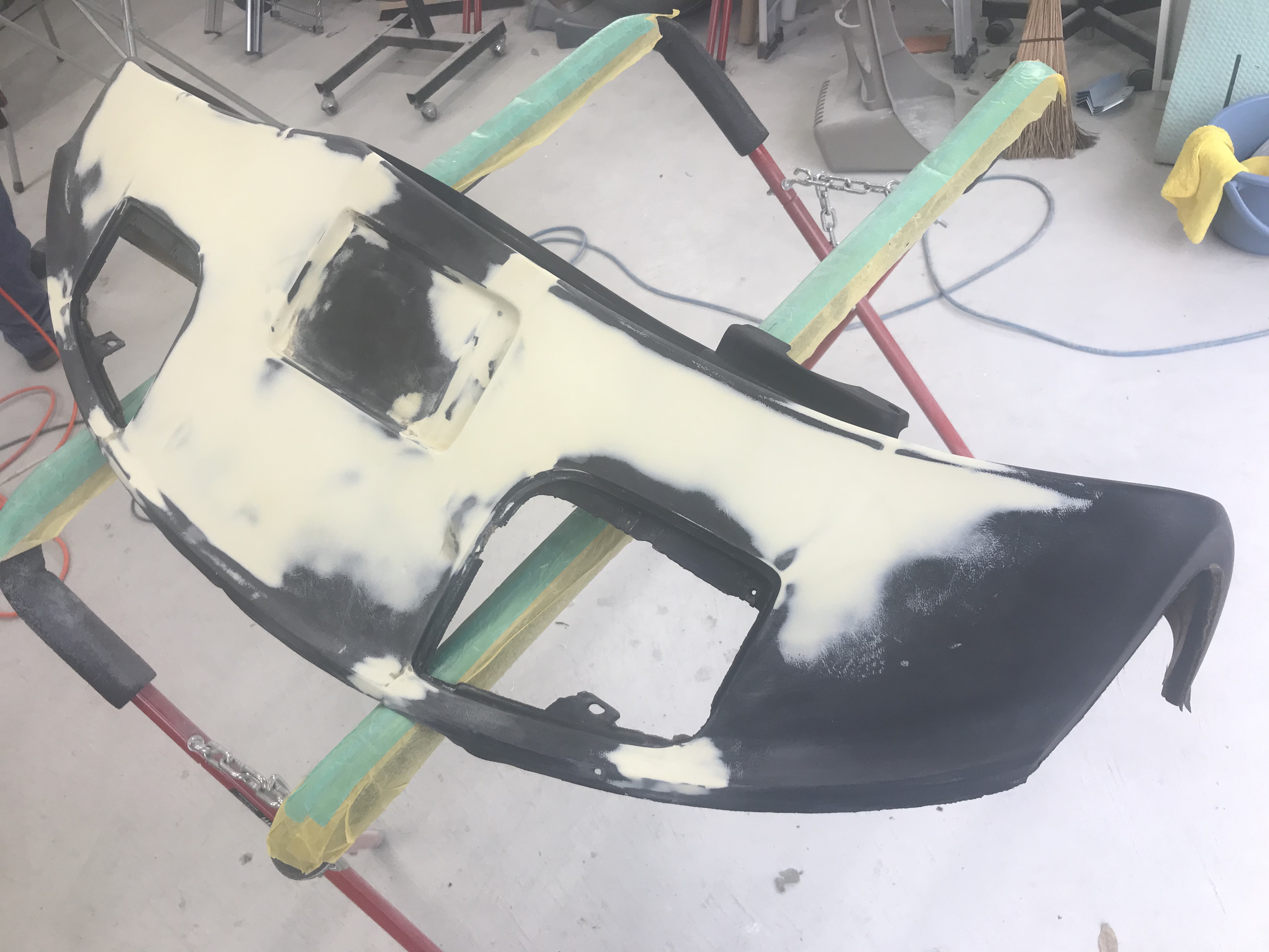 当社でパテ修理ではなく、ビニールレザーを張ることに成功しました。海外で張り替えても30万ぐらいかかります。